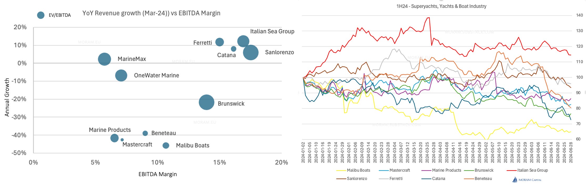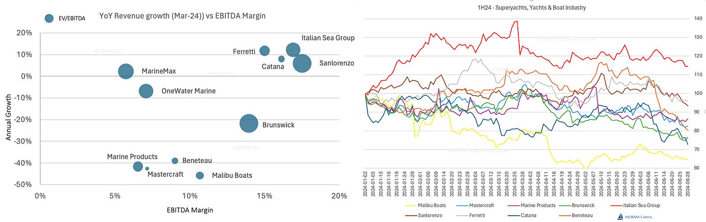 For example, Sanlorenzo, which from an objective standpoint, had the weakest results among the three Italian companies, both due to the typical return to normal market conditions following the unusual post-Covid surge, longer delivery times, and a slowdown in growth compared to previous quarters in order intake primarily due to economic uncertainty in the American market (which is one of the drivers that should contribute to their growth along with Southeast Asia and the Middle East, which are performing well).