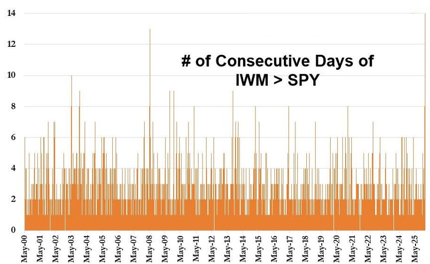 This week’s results should provide the clearest litmus test yet of whether heavy AI investment is translating into real revenue growth and margin expansion. This matters even more in a market where the “Magnificent 7” are broadly flat year-to-date, while performance has been stronger elsewhere across large caps — and still significantly lagging small caps.